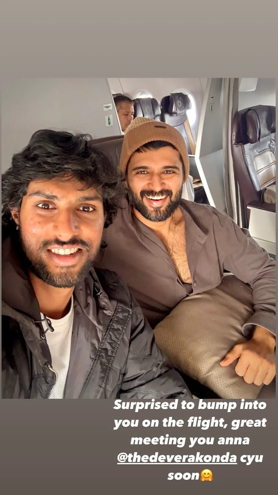 Tilak was wearing a dark quilted jacket with a white t-shirt inside, while Deverakonda was donning a beanie and a dark-brown shirt. They both were smiling with their teeth out and looked extremely happy. The selfie went viral on social media as the fans loved their sudden meet-up.